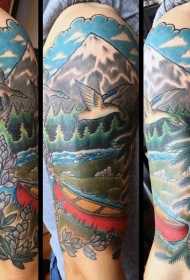大臂好看的彩色秋天森林纹身图案