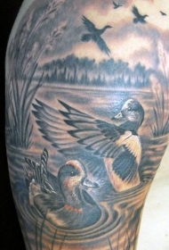 大臂好看的岸边鸭子纹身图案