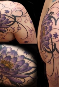 肩部new school彩色花朵藤蔓纹身图案