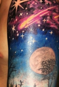 手臂美妙的彩色夜空和树纹身图案