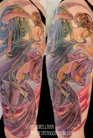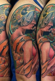 大臂new school插画风格彩色女子纹身图案