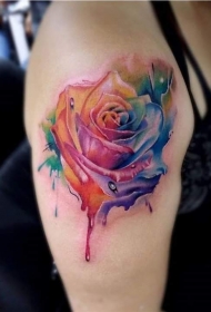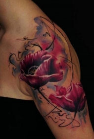 大臂彩色哭泣女人肖像与花朵纹身图案