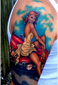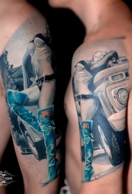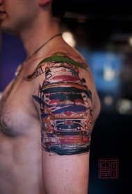 大臂水彩画风格令人难以置信的汽车纹身图案
