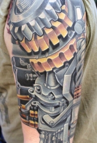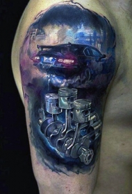 大臂水彩画风格难以置信的发动机部件纹身图案