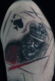 大臂逼真的黑桃扑克牌和国王纹身图案