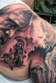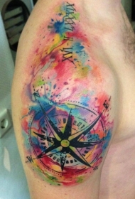 大臂赌博主题彩色手枪和扑克牌纹身图案