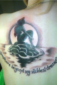 美丽的小美人鱼和夕阳背部纹身图案