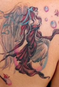 背部美丽的彩色精灵纹身图案