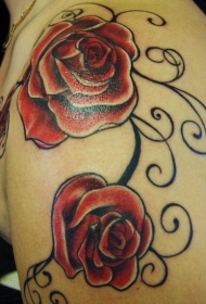 肩部两朵美丽的红玫瑰纹身图案