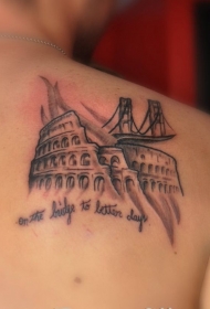 背部美丽的斗兽场意大利纹身图案