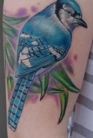 肩部美妙的彩绘大玫瑰与小鸟纹身图案