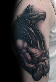 大臂黑灰风格埃及阿努比斯神纹身图案