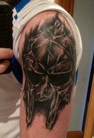 大臂黑灰风格角斗士头盔纹身图案