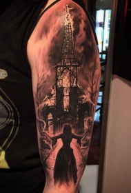 大臂神秘的黑色女人和楼梯纹身图案