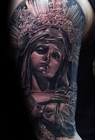 黑灰风格彩色逼真的圣女雕像纹身图案