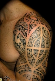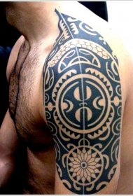 大臂很漂亮的黑色波利尼西亚图腾纹身图案