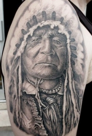 大臂黑灰色的印度马修詹姆斯肖像纹身图案