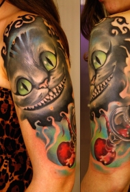 大臂令人印象深刻的彩柴郡猫纹身图案