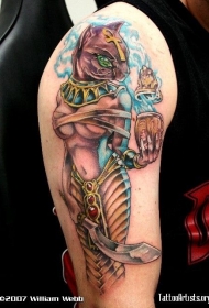 大臂华丽的神奇埃及猫形性感女神纹身图案