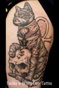 惊人的埃及猫木乃伊与骷髅纹身图案