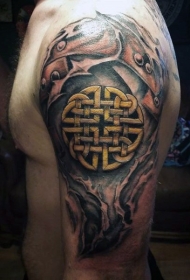 男性肩部凯尔特结纹身图案