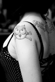 肩部卡通菲利克斯猫和骨头纹身图案