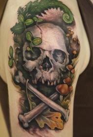 肩部彩色蘑菇骷髅纹身图案