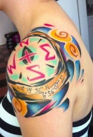 肩部原始彩色指南针纹身图案