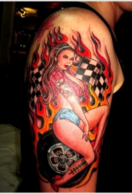 不寻常彩绘诱人赛车女子纹身图案