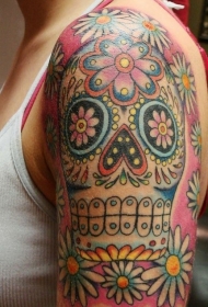 肩部彩色sugar 骷髅纹身图案