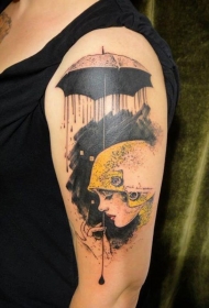 不寻常的风格彩绘妇女与伞纹身图案