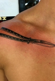肩部纹身男 男生肩部黑色的匕首纹身图片
