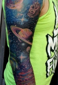 花臂原始彩色大规模太阳能系统纹身图案