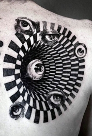 肩部黑白神秘飞行眼睛与催眠装饰纹身图案