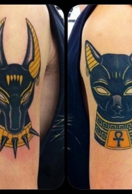 肩部埃及风彩色神塑像纹身图案