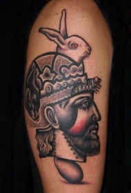 肩部黑灰北极熊与战士纹身图案