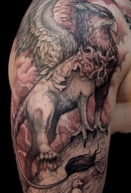 肩部棕色格里芬神兽纹身图案