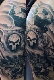 肩部令人惊叹的非常现代士兵纹身图案