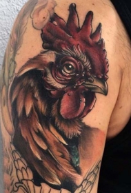 肩部真正的照片彩色公鸡纹身图片