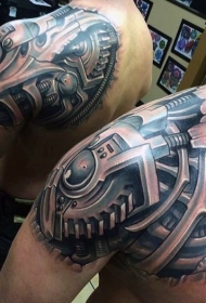 男性肩上的未来机械纹身图片