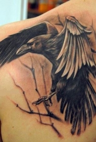 黑棕色肩膀乌鸦纹身图案