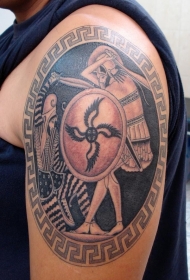 男性肩部彩色光环战士纹身图片