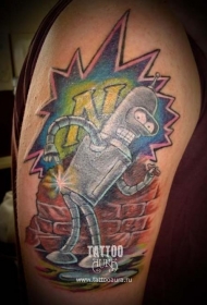 肩部彩色未来世界的英雄纹身图片