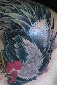 肩部彩色跳舞的公鸡纹身图片