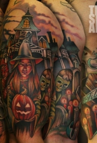 肩部令人毛骨悚然的万圣节主题纹身图片