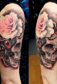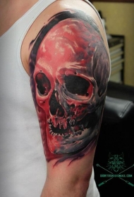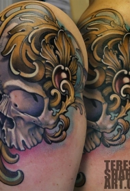 肩部彩色大骷髅纹身图案