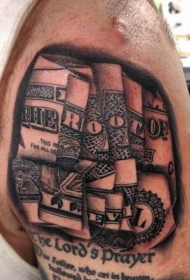 肩部黑白精确美元钞票纹身图片