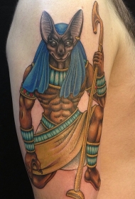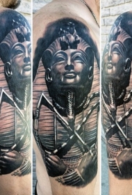 肩部黑棕色埃及法老雕像纹身图片