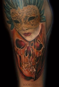 肩部不寻常的彩色骷髅蒙面妇女纹身图案