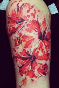 肩部水彩色中国风芙蓉花纹身图案